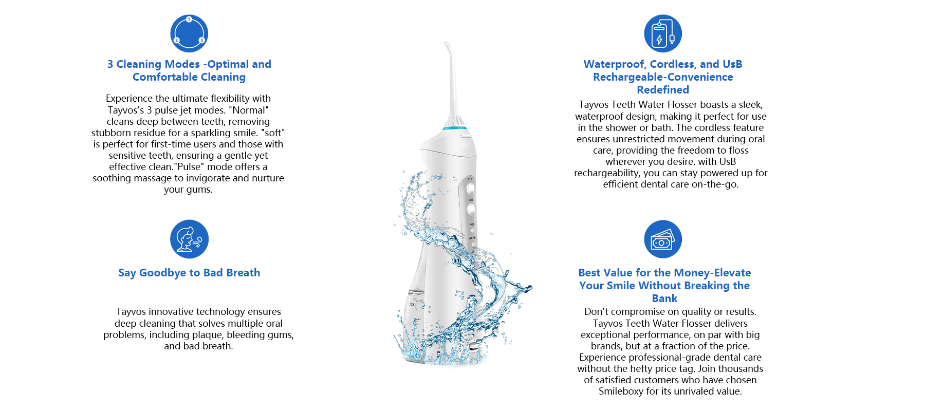Our innovative Tayvos Water Flosser is packed with advanced technology to provide you with an exceptional cleaning experience.