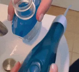 Begin by filling Tayvos Teeth Water Flosser's reservoir with clean water. The reservoir holds enough water for a thorough flossing session, ensuring you can effortlessly clean your entire mouth.