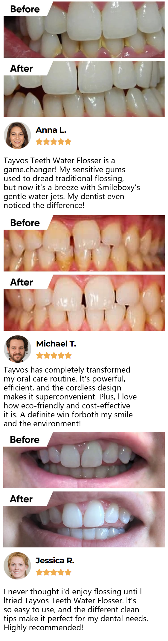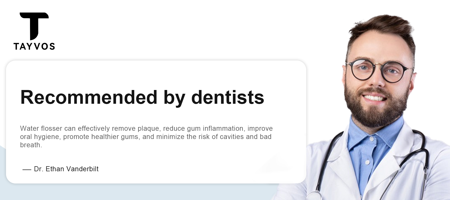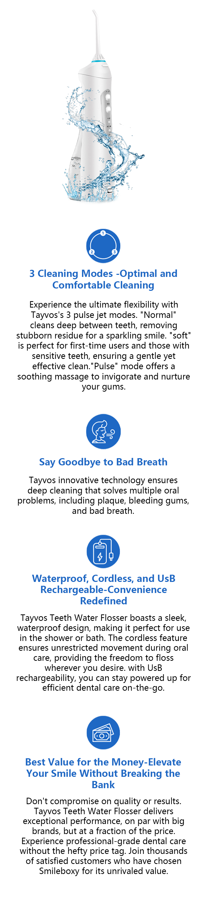 Gentle, Efficient, and Dentist-Recommended - Say Goodbye to Time-Consuming Flossing And Elevate Your Oral Care with the Tayvos Teeth Water Flosser.