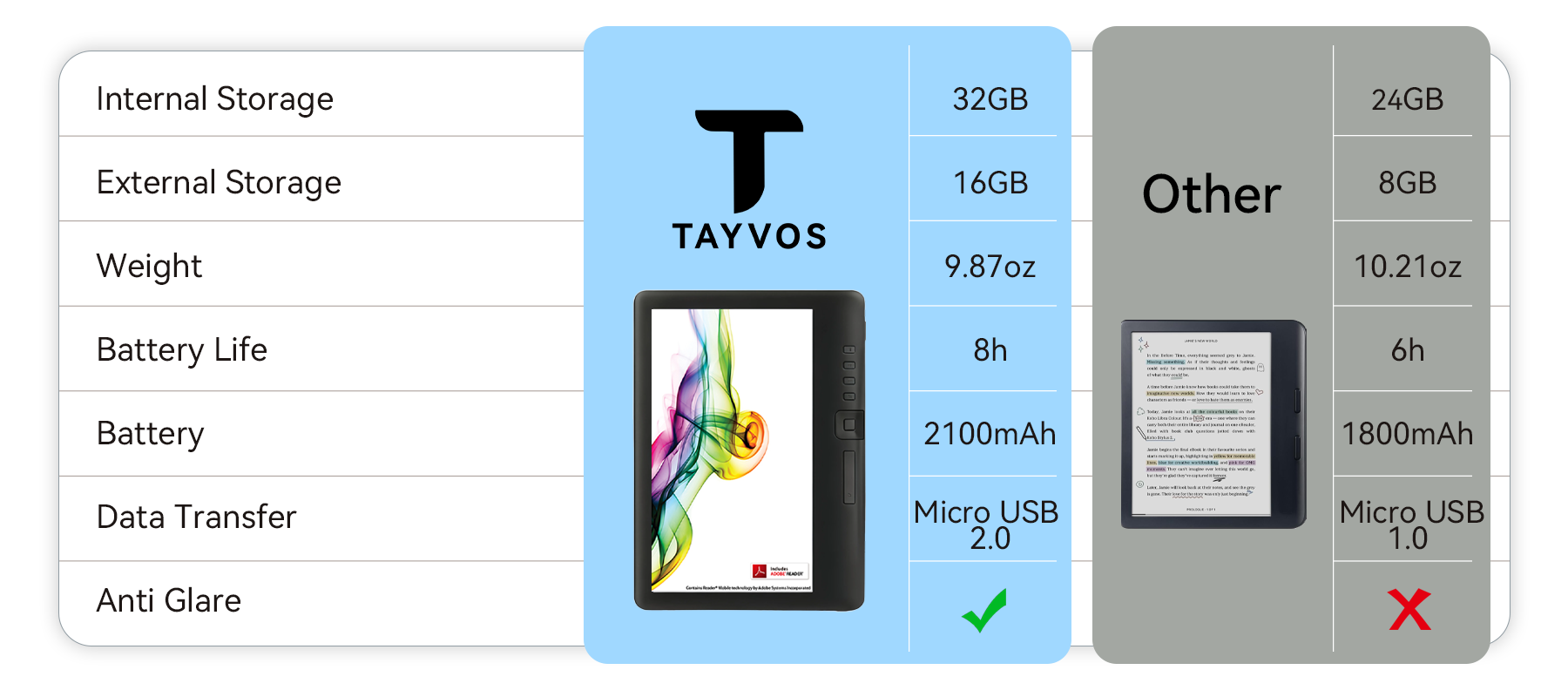 Thus, Tayvos was born. The brand emphasizes lightweight portability, eye-friendly display, and powerful performance, featuring a 7-inch glare-free screen, 2500mAh long-lasting battery, and a vast built-in library—allowing users to enjoy a clear, comfortable, and uninterrupted reading experience wherever they go.