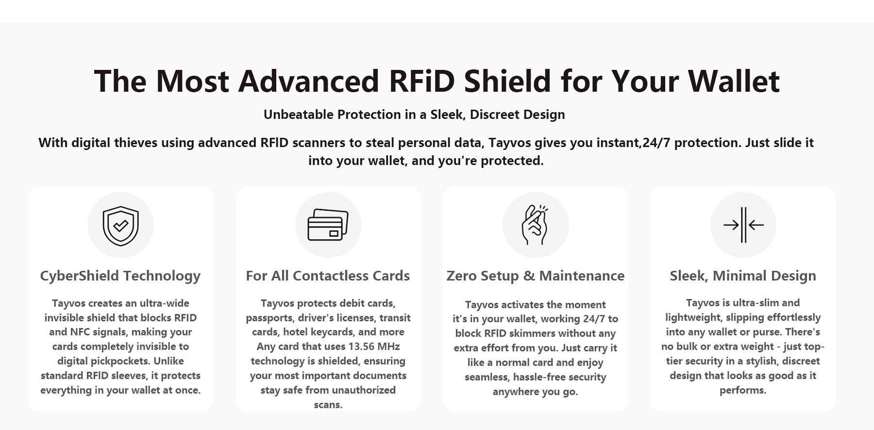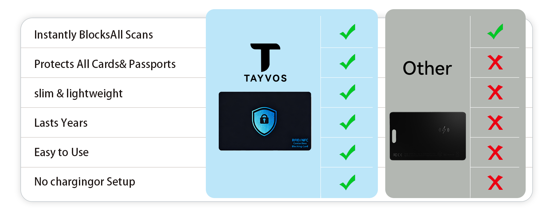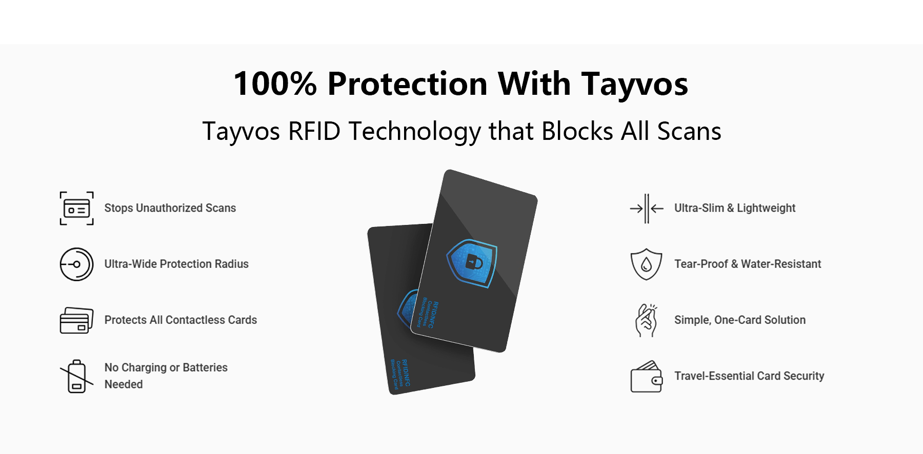 Tayvos NFC/RFID Blocking Cards – Safeguard Every Transaction, Protect Every Moment.