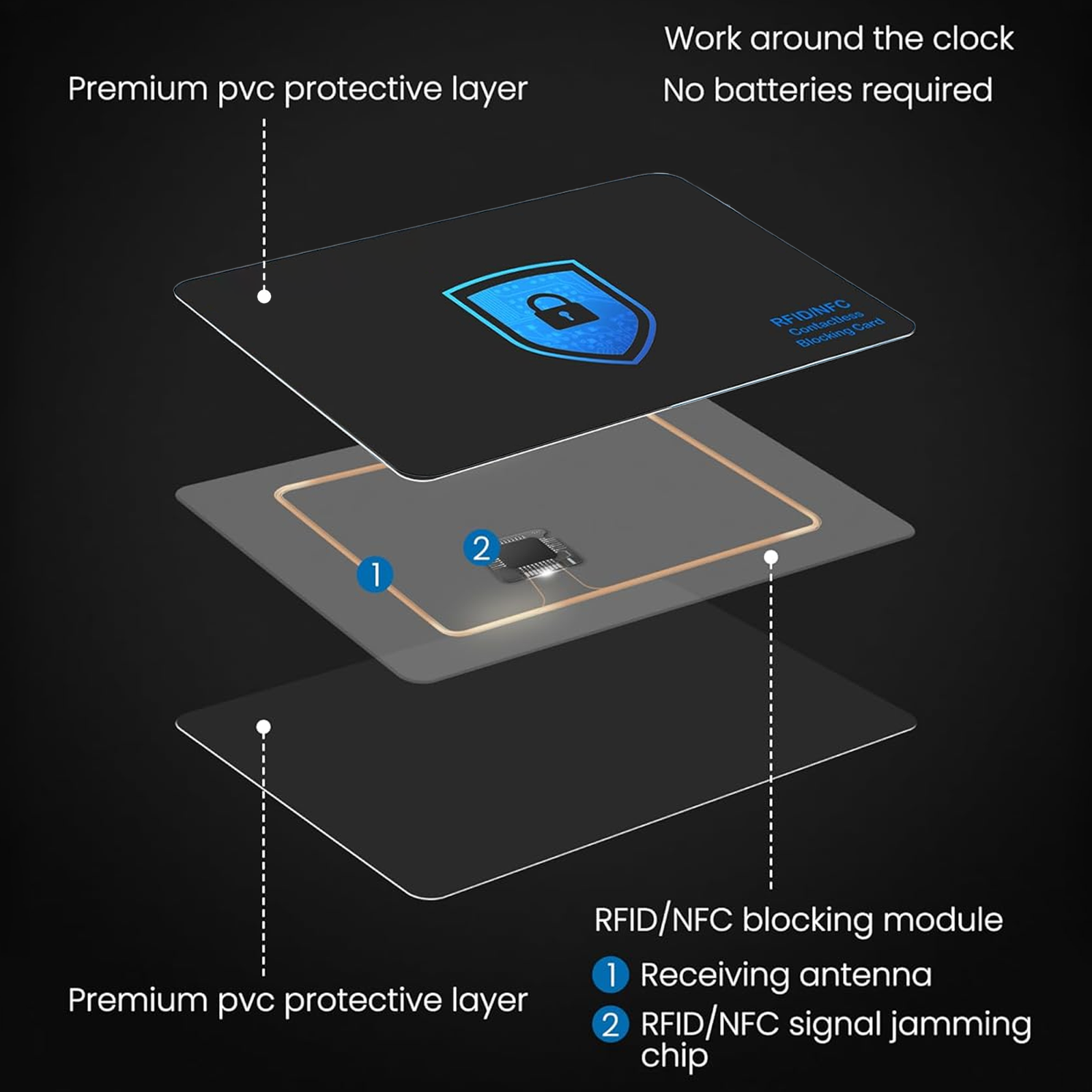 The RFID Blocking Cards uses physical shielding technology to block unauthorized scanning of your credit cards, IDs, transit passes, and other sensitive data, effectively preventing data leakage.